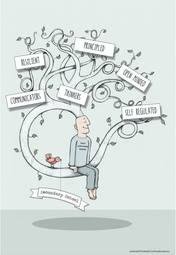 As parents and educators, we expect our children/students to embrace the idea that we need to learn throughout our lives as we endeavour to become the best humans we can be. We spend time in our lessons in Radford’s Secondary School (SS) teaching them about mathematics and chemistry or, in my class, literature and how it can help us learn about humanity and empathise with others. Alongside learning that is more content based, we are also seeking to teach them the skills needed for our disciplines and for life. The skills we teach for life are evident in our SS Learner Trait poster, created by Matthew Johnstone, which graces the Morison Centre reception. I love the tree image, because it suggests that our students are growing in their skills and, of course, as people while they work, study and play in their years at Radford.
