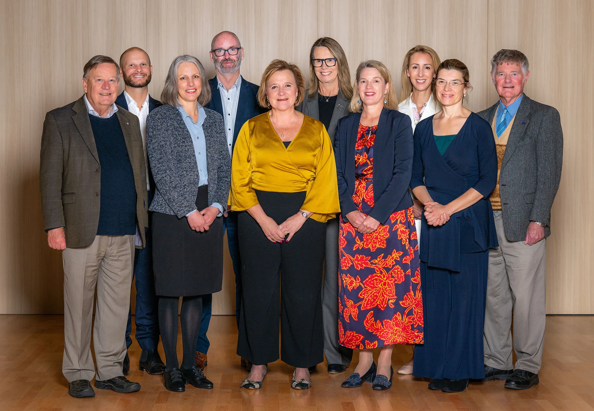 Front row (L–R) Mr Malcolm Lamb, Mrs Emily Purvis, Mrs Vicki Williams, Mrs Genevieve Quilty, Dr Katherine Gordiev, Mr Tim McGhie. Back row (L–R) Mr Mark Whitby, Professor Barney Dalgarno, Mrs Jocelyn Martin, Ms Carrie Leeson.