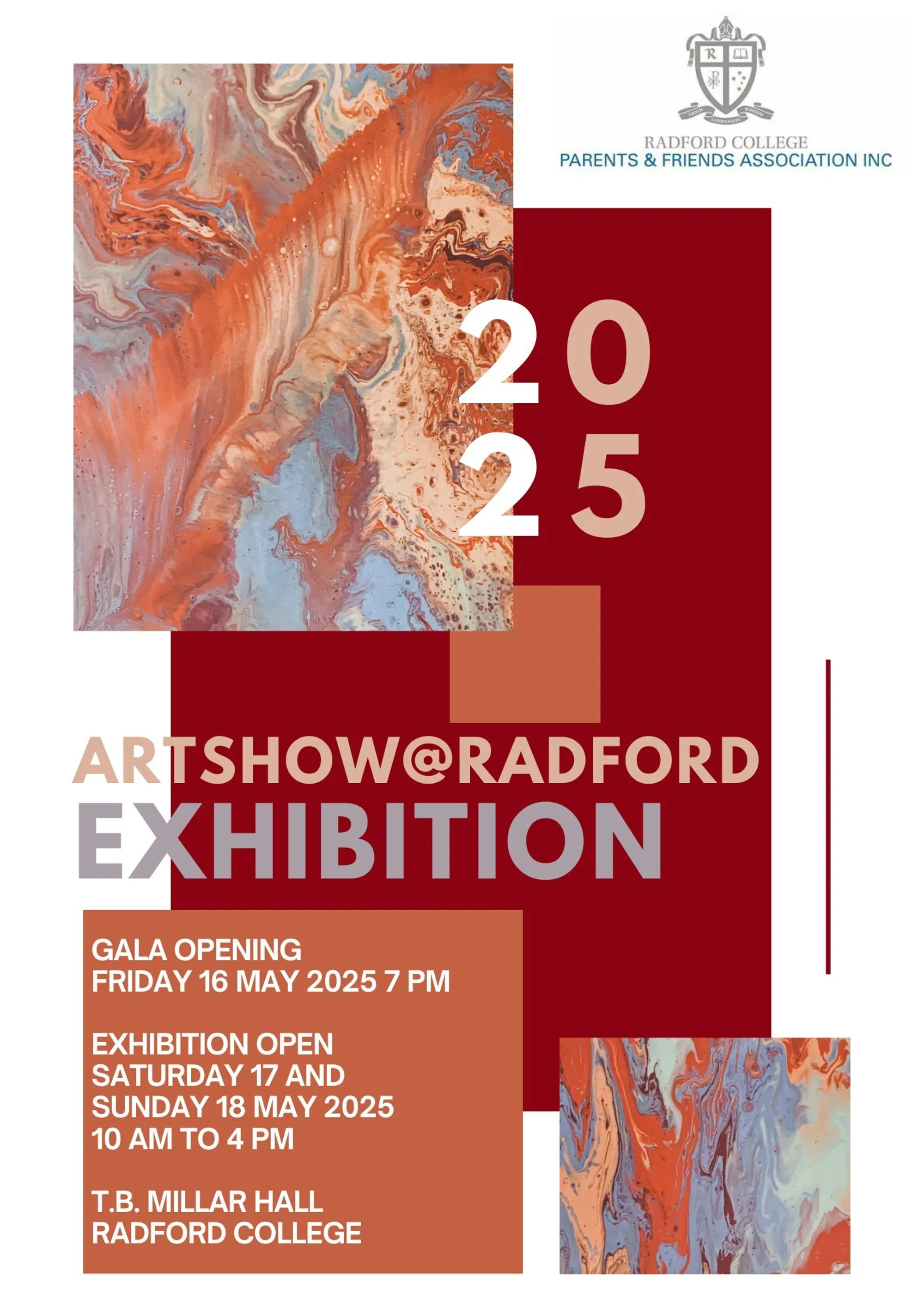 - Artshow@Radford Gala evening – Friday, 16 May – 7.00 pm – T.B. Millar Hall – Buy your tickets here