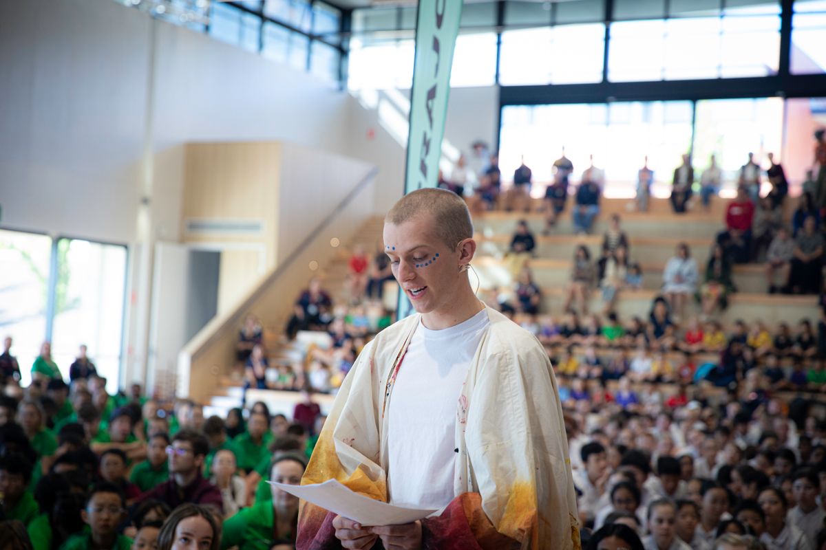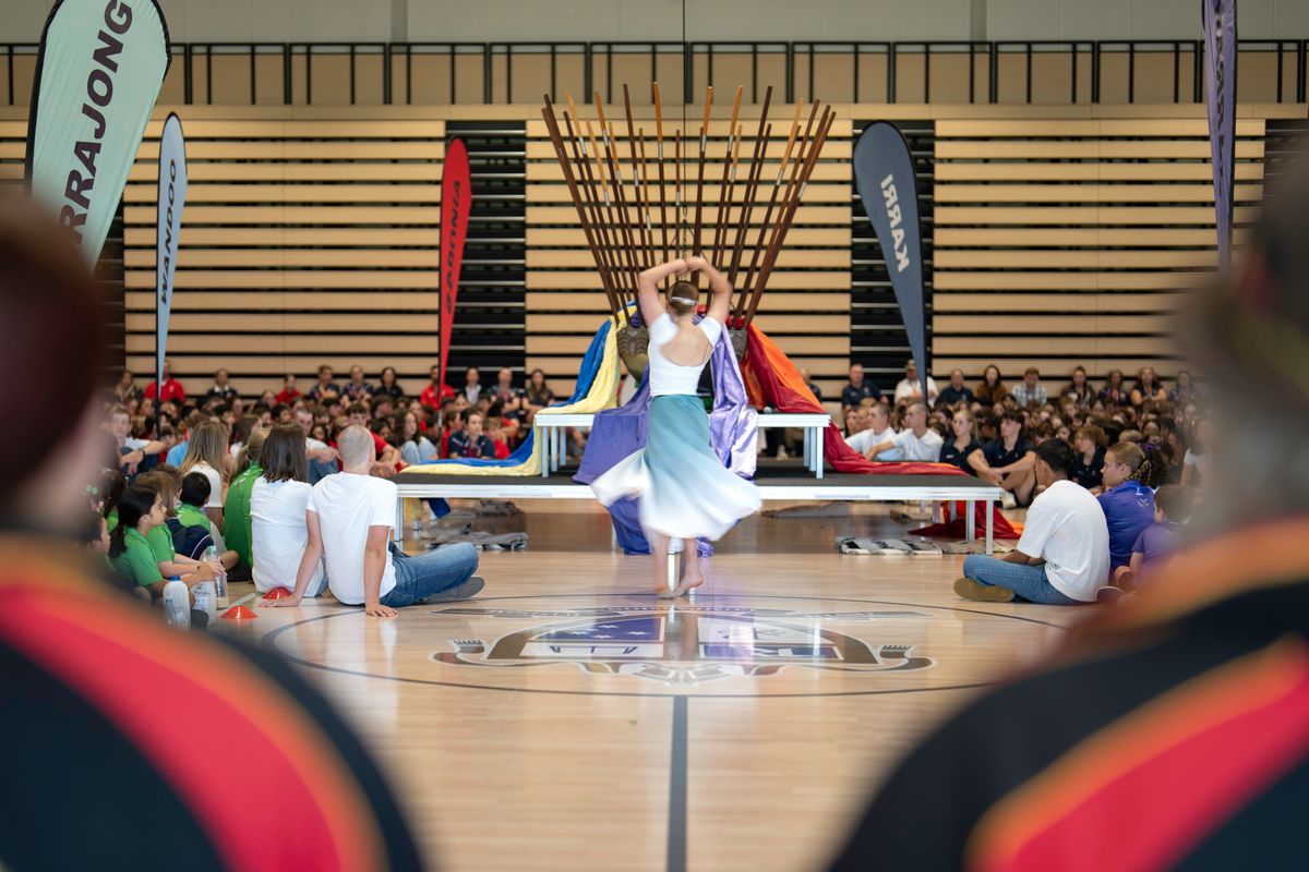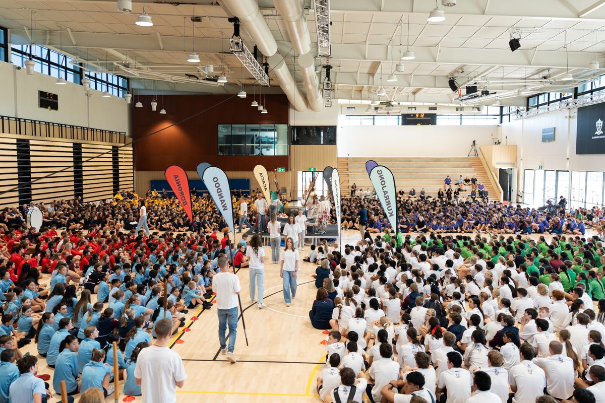 From the moment Junior School students marched proudly into the space, shaking their homemade musical instruments, there was a palpable sense of joy and unity. Wearing their House shirts, students from the Junior and Secondary Schools came together to create a rainbow across the Collegians Centre.