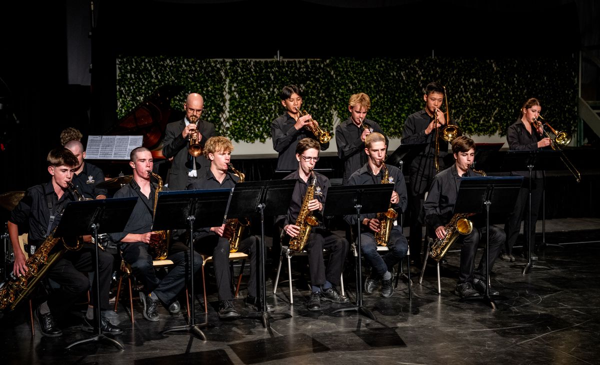 Our planned guest Collegian unfortunately had to cancel for medical reasons, so instead our Performing Arts Prefects, Charlotte Knight and Tim Kopras, interviewed three music staff Collegians, followed by a performance by the Big Band, featuring one of those Collegians, Mr Ben Marston, on trumpet.
