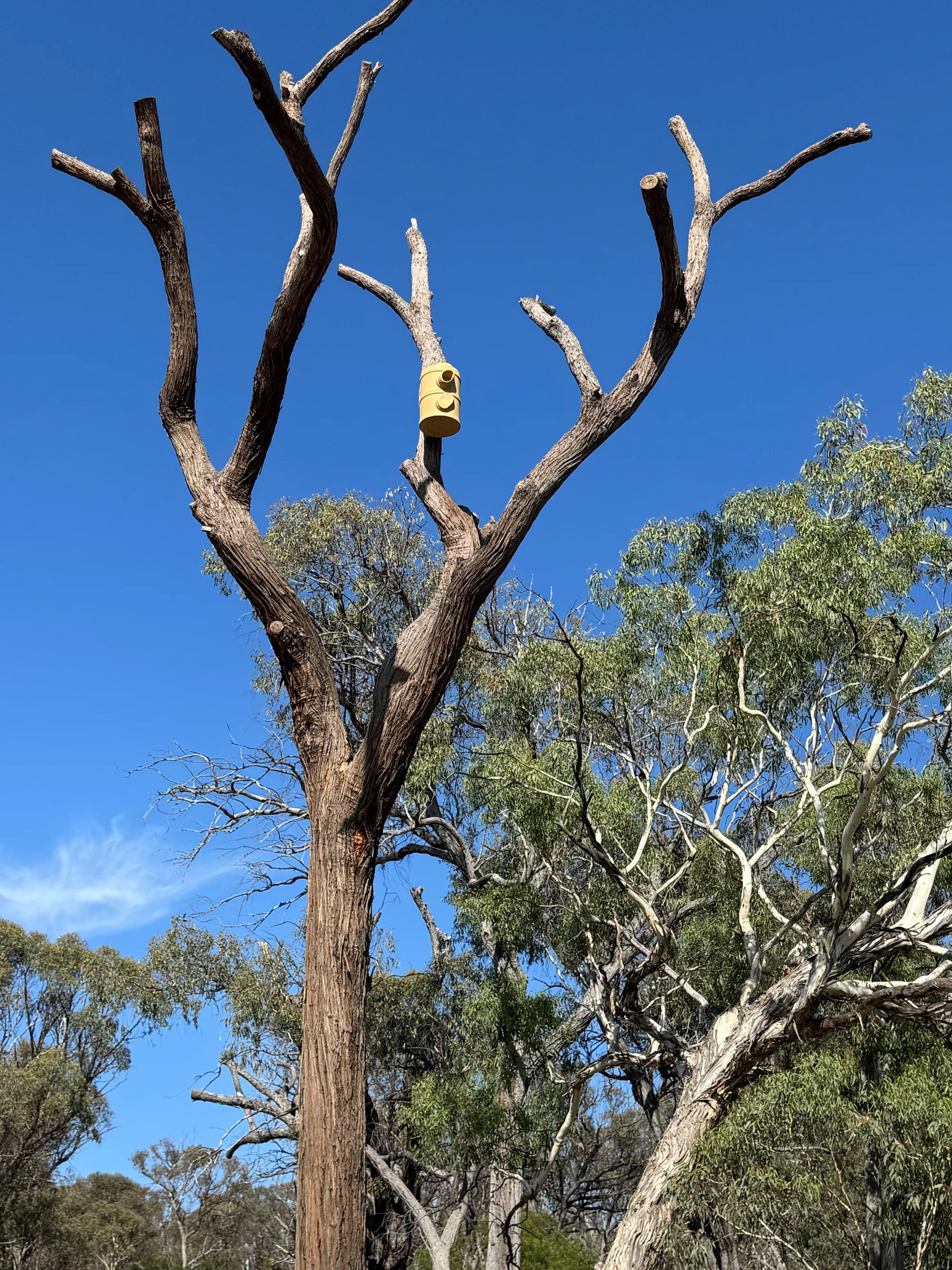Fast forward to last Wednesday, we received a call from Radford Facilities Manager, Mr Craig Webber, notifying us that the birdhouses had arrived and were being installed that very day! As there are specific requirements for the installation of the birdhouses, Mr Webber spent considerable time locating the appropriate trees and engaging an arborist to mount the houses at least six metres high on the trunk.