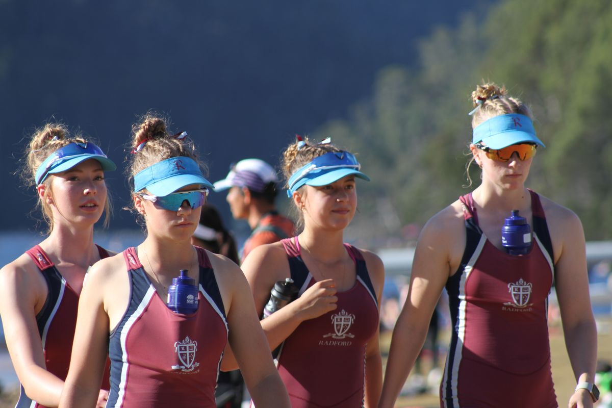 After five gruelling days on the water, the rowers have reached the finals of the Australian National Rowing Championships. The conditions at the scenic Lake Barrington in Tasmania haven't always been easy, with the rowers battling strong winds on Monday and Wednesday. However, they finished each day strong and Head of Rowing, Mr Gordon Marcks, was thoroughly impressed with the grit and determination shown by all Radford competitors as they attacked their races with confidence. Radford was mentioned frequently in the regatta commentary, praised for their strong technical foundations and teamwork.