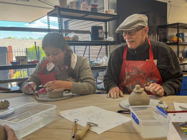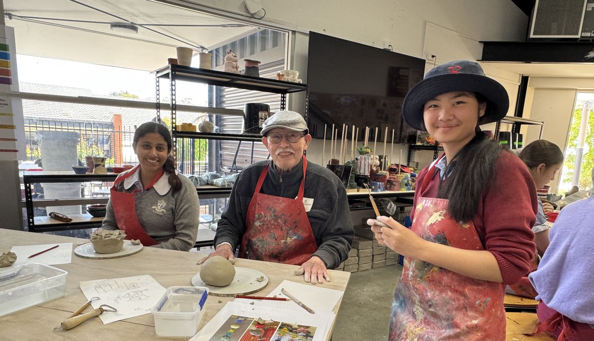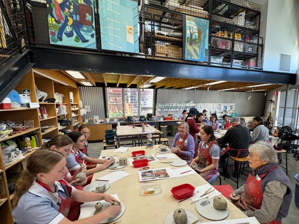 Last Friday, a group of residents from Calvary Aged Care in Bruce joined our Year 10 art students for a collaborative clay workshop. Together, they contributed to a vibrant project of a totem pole made up of individually crafted clay sections.