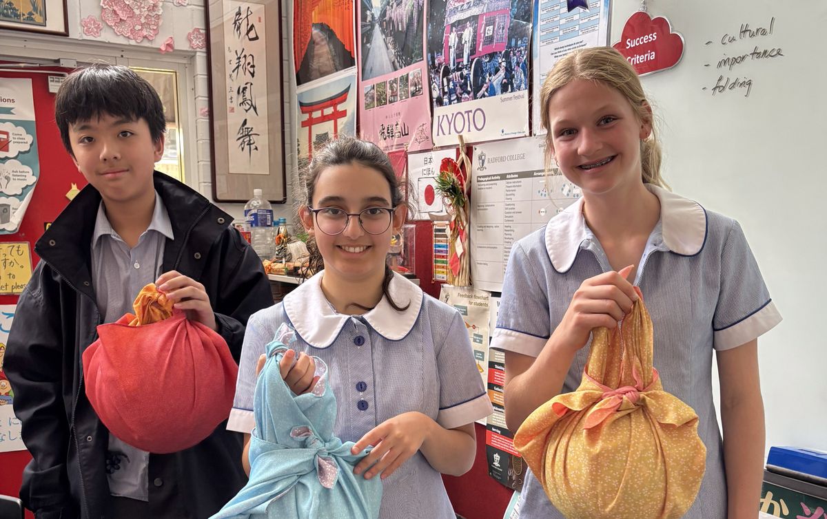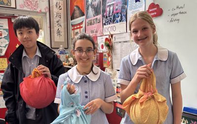 Our Year 8 Japanese students had the opportunity to take part in an online session with a Japanese tutor from The Japan Foundation in Sydney to learn about furoshiki – the Japanese tradition of wrapping items with cloth.