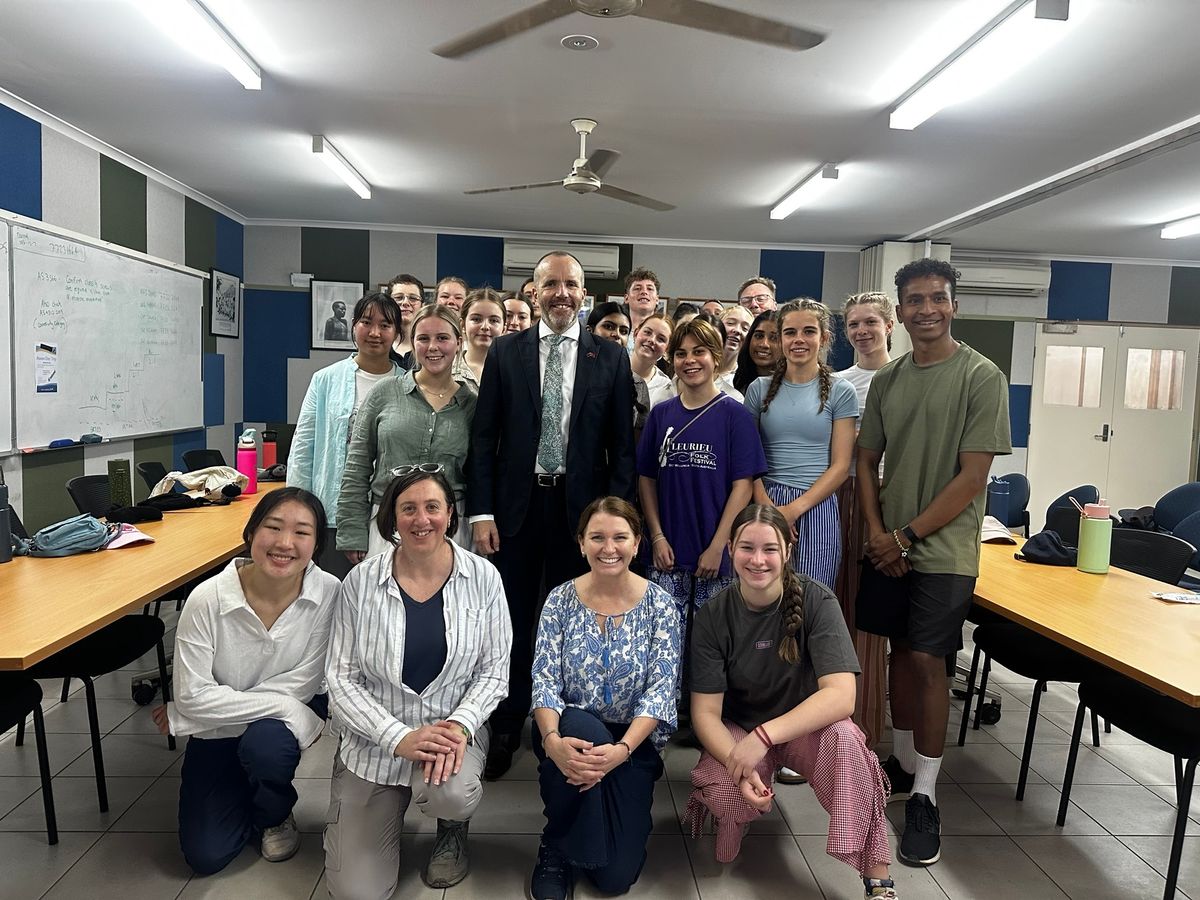 While in Timor-Leste, some of our students had the opportunity to engage with a NAIDOC exhibition entitled Yuendumu Doors. The exhibition was facilitated by the Australian Embassy in Timor-Leste and hosted by the Galeria Memoria Viva in Dili, a museum dedicated to the life and work of President José Ramos-Horta.