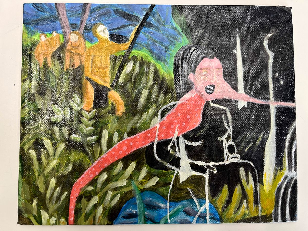 Year 10 students painted a collaborative up-scaled work by contemporary surrealist artist Rodel Tapaya and then created their own surrealist paintings.