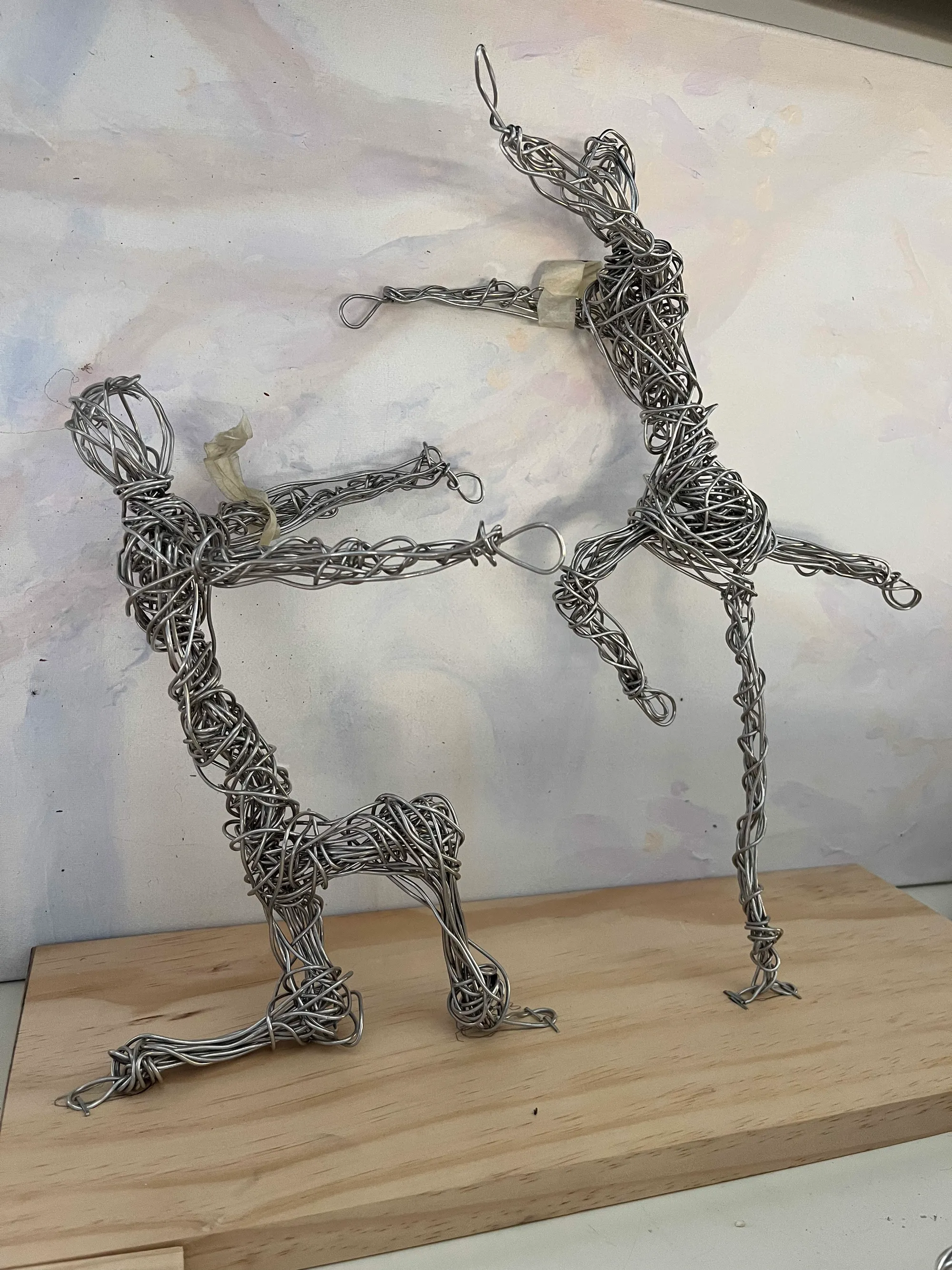 After Year 9 students submitted entries to the Little Archies, they started developing their understanding of form and the figure through the construction of wire sculptures and drawings, and paintings of hands.