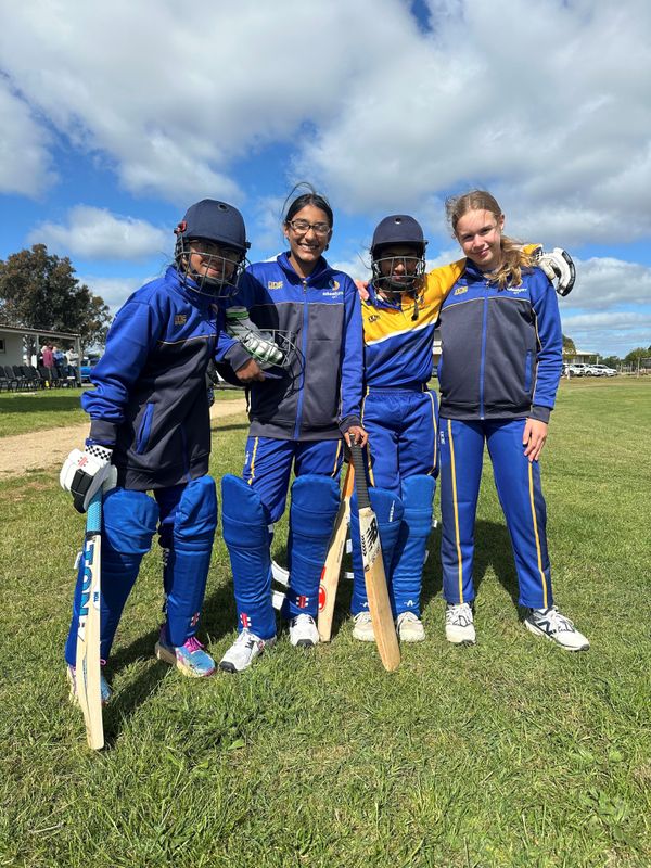 12&U girls' cricket – Tahlia (Year 6), Akshara (Year 5) and Zoey (Year 5)