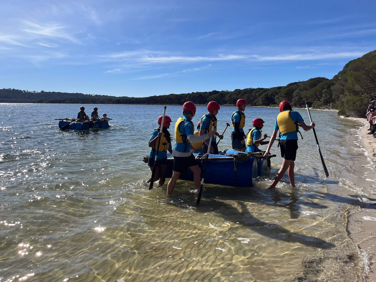 The Silver Award participants walked 32 kilometres from Pambula along the coast towards Tathra, rafted across the Merimbula Bay and worked in teams to make their own rafts out of plastic barrels with the goal of staying afloat.
