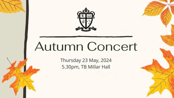 Our Autumn Concert will be held on Thursday 23 May from 5.30 pm in the T.B. Millar Hall.