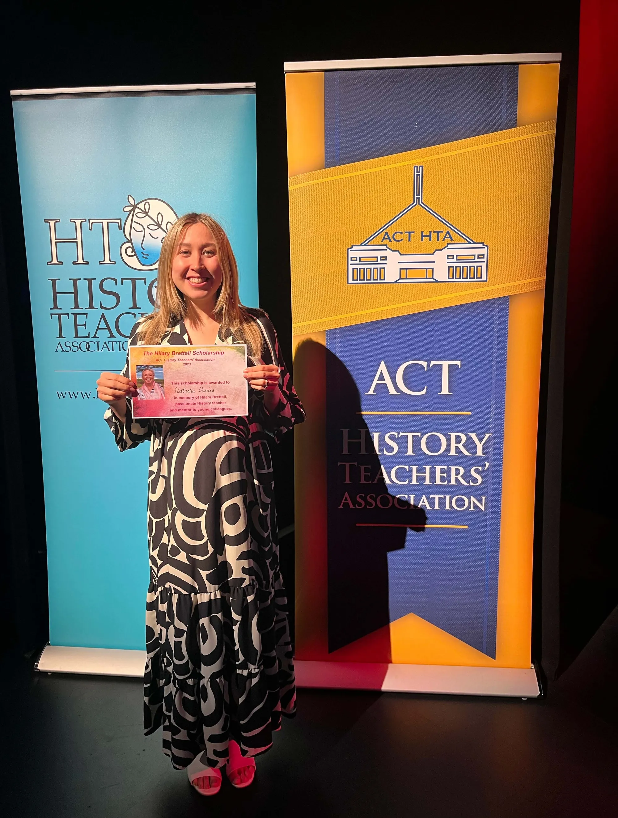 The history, philosophy, and RaVE (HPR) department is thrilled to announce that Mrs Natasha Davies is a recipient of the ACT History Teachers’ Association (ACT HTA) Hillary Brettell Scholarship 2023. The scholarship is for early career teachers who demonstrate passion and dedication to refining their craft. Mrs Davies' successful application detailed the ways in which she uses methodologies, such as social history, and concepts, such as historical empathy, to make history relevant to the here and now of students’ lives.