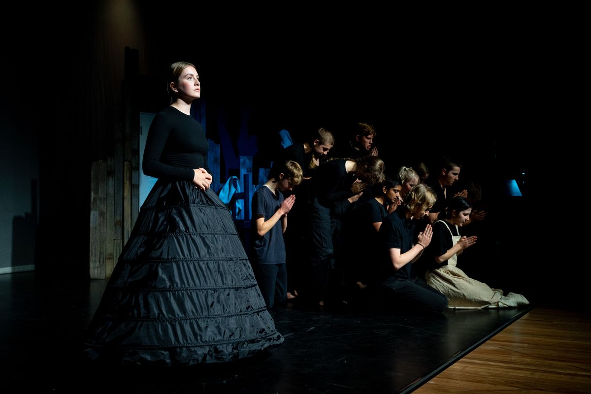 The production is performed by the Year 11 and 12 Curriculum Drama Class under the direction of Ms Sally Stenning. The students have been challenged to play a range of characters of different ages and in a variety of situations. In this ensemble performance every actor plays a vital part in the story.
