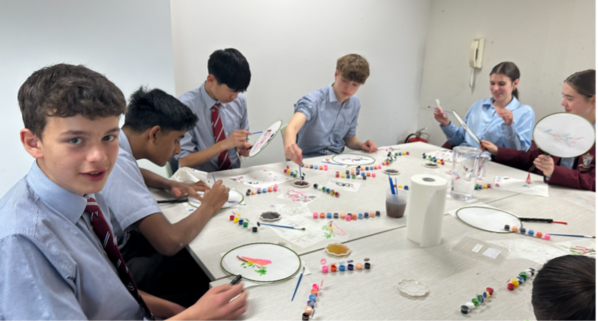 The afternoon was dedicated to exploring the artistic side of Chinese culture through a series of engaging arts and crafts activities. Students were introduced to traditional fan making, where they designed and decorated their own paper fans, drawing inspiration from nature.