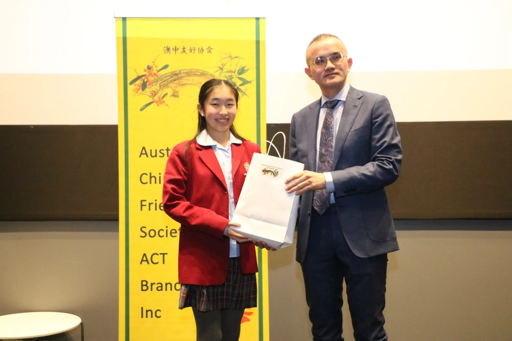 The event was organised by the Australia–China Friendship Society (ACT Branch). It began with a lively discussion on the benefits of learning a 2nd (or even 3rd) language, followed by speeches from society representatives and a Minister from the Chinese Embassy, who presented the awards to the recipients.