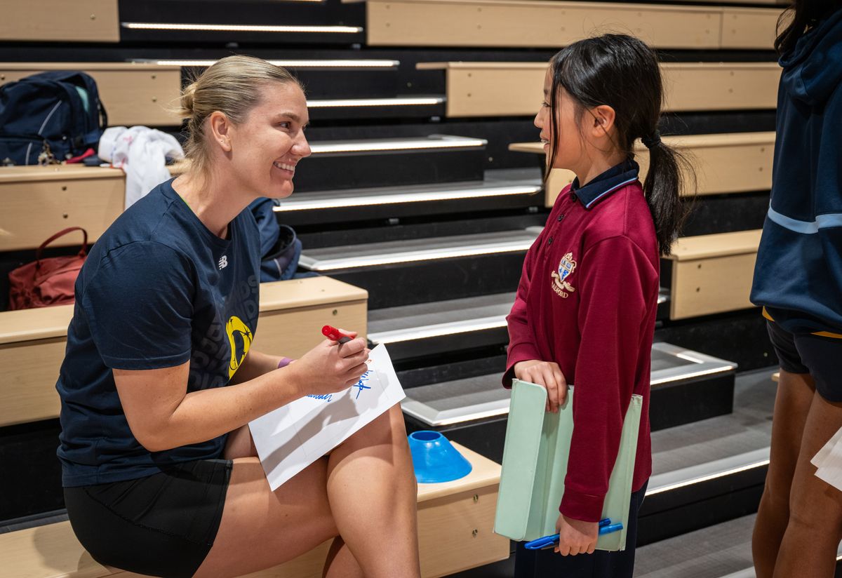 Liz Watson, the current Diamonds Captain presented a signed team ball to our 2025 Netball Captain, Alexandra Smith (Year 12 Jarrah), as a token of appreciation to Radford for hosting the Australian Team.