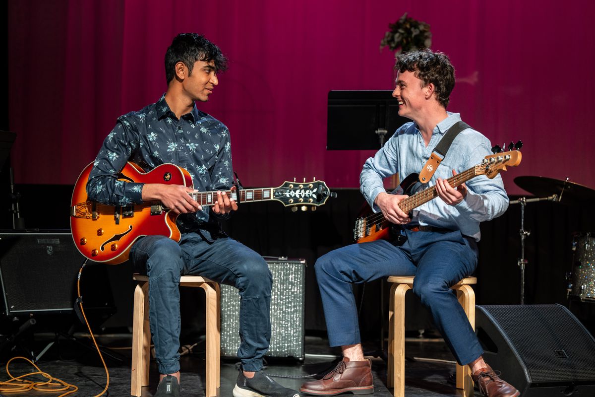 Ellie Archer gave a beautiful operatic vocal performance and was then joined by Sebastian Leigh for a vocal duet. Sohum Shukla performed a mesmerising guitar arrangement of a Joe Hisaishi tune, then was joined by Finn Robinson on bass guitar, and lastly by members of the Wet Fish Quintet for their final jazz number.