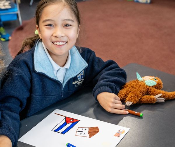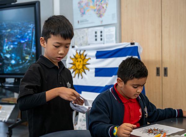 Following the ceremony, students from Year 3 to Year 6 engaged in two sets of 30-minute activities in the Junior space, while Kindergarten to Year 2 students participated in dance and traditional games. Across all age groups, Spanish language exposure took various forms – games, traditional dance, art and percussion – fostering interactions with the participants.