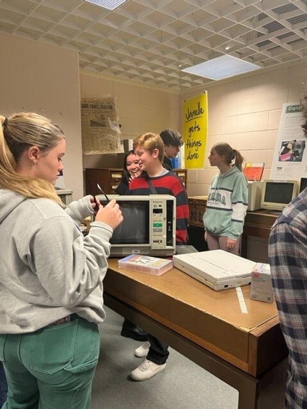 The students travelled early in the morning with Dr Rebecca Barlow and I to the National Library of Australia (NLA), where they attended the NLA tour, 'Online and Underground'. This included a research presentation to support our extended essay students to better utilise the NLA catalogue and research space. Due to some refurbishment work continuing in the many layers of the NLA below ground, we didn’t get to go into the stacks and see the robots that collect books requested by people to deliver to the reading room. However, the students really enjoyed looking at some artefacts in the archive collection, as well as the two exhibition spaces: Treasures Gallery and Grit and Gold.