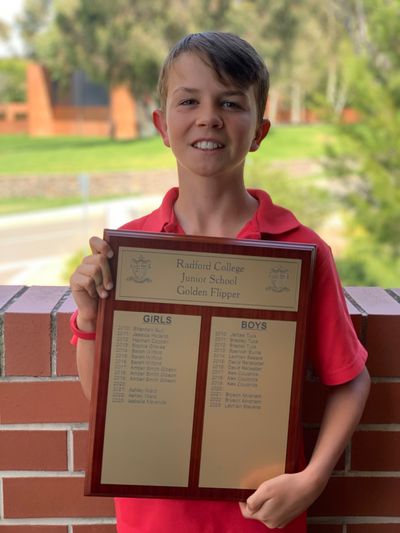 A special commendation to Lachlan Stevens who took out the double, winning both the Golden Slipper at the Athletics Carnival and the Golden Flipper at the recent Swimming Carnival. A mighty effort and accomplishment to be crowned the fastest Junior School boy on track and in the water.