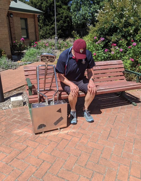 The Public Art tour was a highlight for students, in particular Radford Collegian Luke Chiswell’s Hold Your Head Up, Jason Wing’s Tree Spirits and Bill Doorman’s Ma baby gone and left me. I find Will Coles’ Burden and Memories at Goulburn Railway Station a great piece for reflecting on the way the location of public art making a difference to interpretation. There was much discussion amongst students as to what these two suitcases represented in their location.