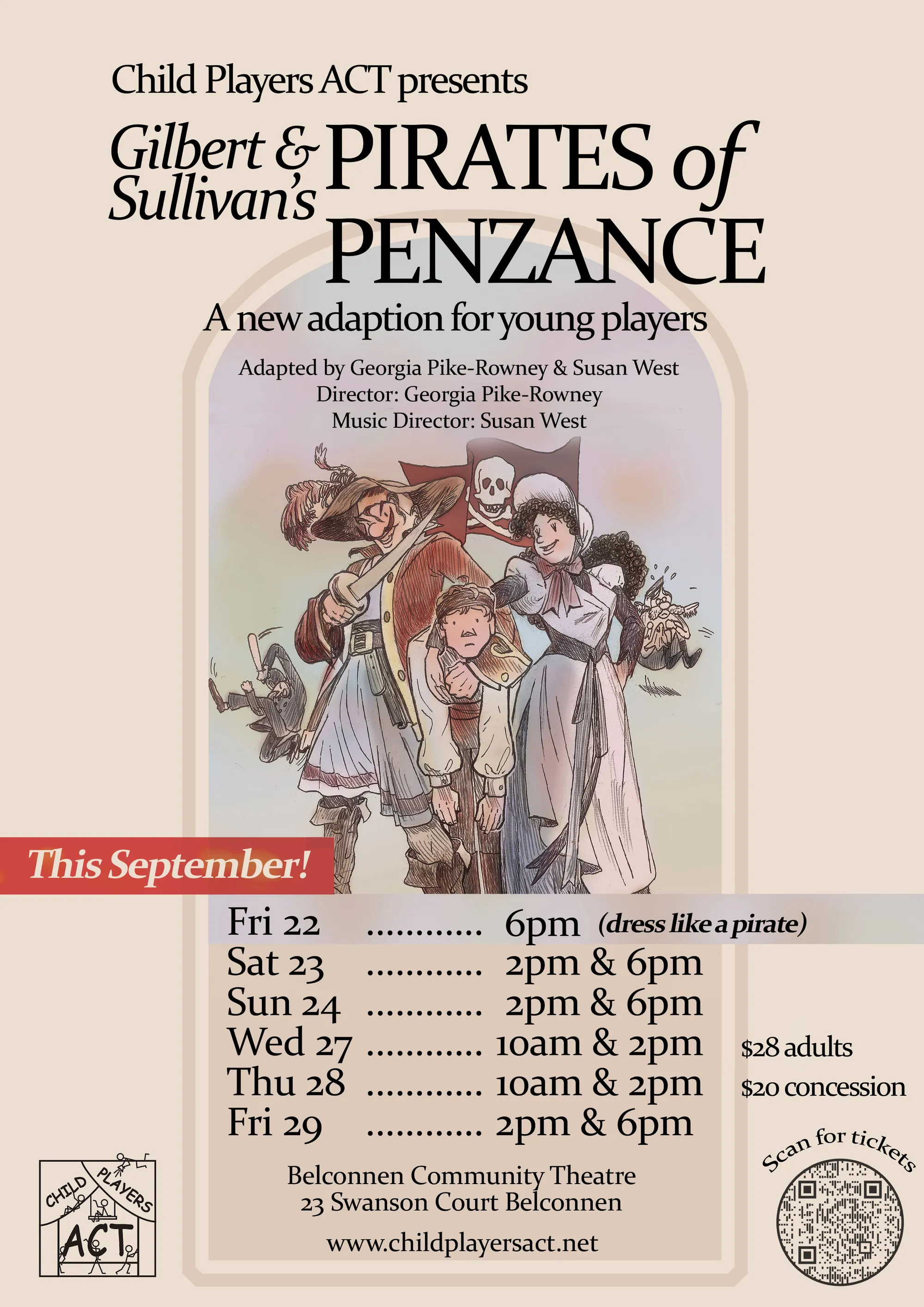 Tickets for the Pirates of Penzance are now available to purchase. The show opens on Friday, 22 September at Belconnen Community Theatre and runs until Friday, 29 September. Secure your tickets now through TryBooking Australia.