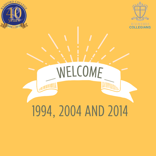 The Radford Collegians Association invites you to join us as we celebrate the return of the graduating classes of 1994, 2004 and 2014 to the College on Saturday 7 September 2024.