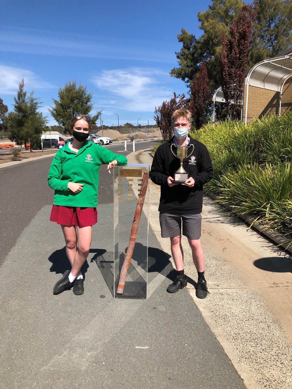 In the foyer of the Secondary School library are two wooden artefacts in acrylic showcases. Together they represent the Spirit Trophy that was first introduced in 1994. They were brought in to recognise “the overwhelming spirit of the House as opposed to the physical talents". The trophy consists of an aboriginal totem and a didgeridoo and is awarded to the House which earns the greatest number of spirit points over the year. (Radfordian, 1994).