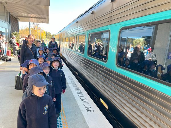 In Weeks 5 and 6 Kindergarten classes also had the opportunity to head out on an adventure that involved riding the Radford bus to the Canberra Train station before catching the CountryLink train to Bungendore. They loved looking out the windows and observing animals, traffic and nature as well as putting down the tray, reclining their chair and testing out the footrest!