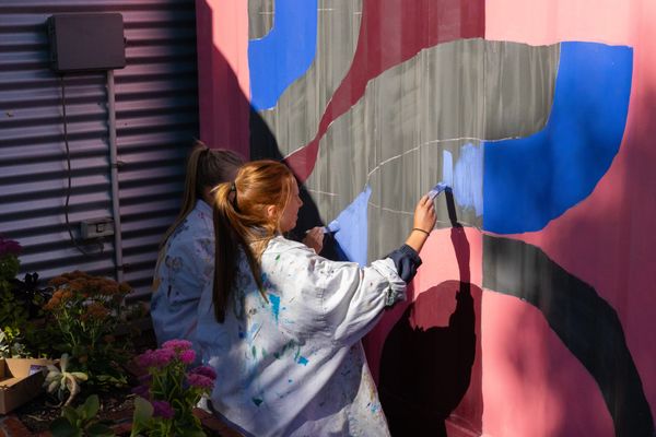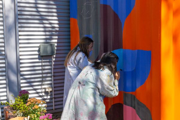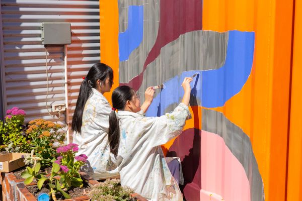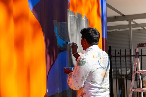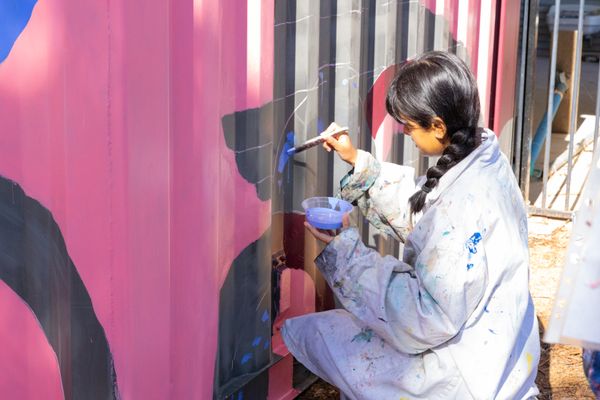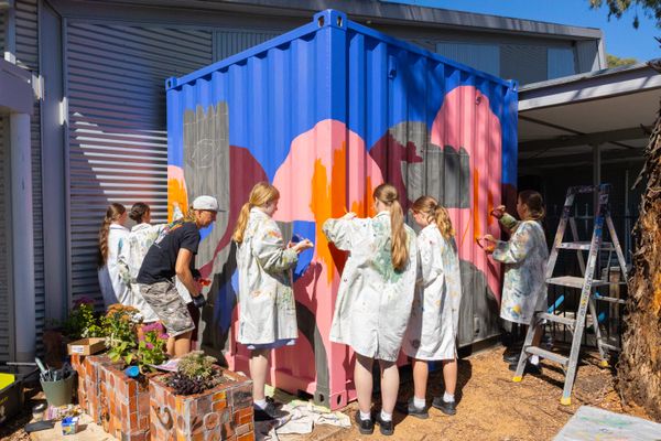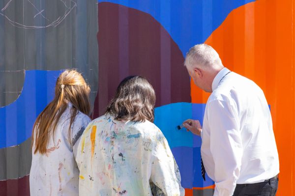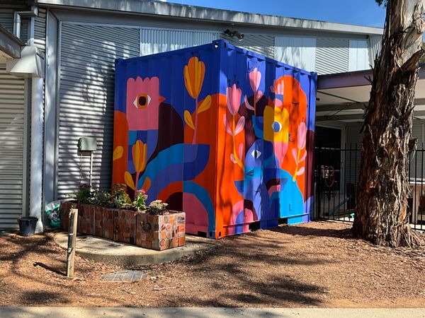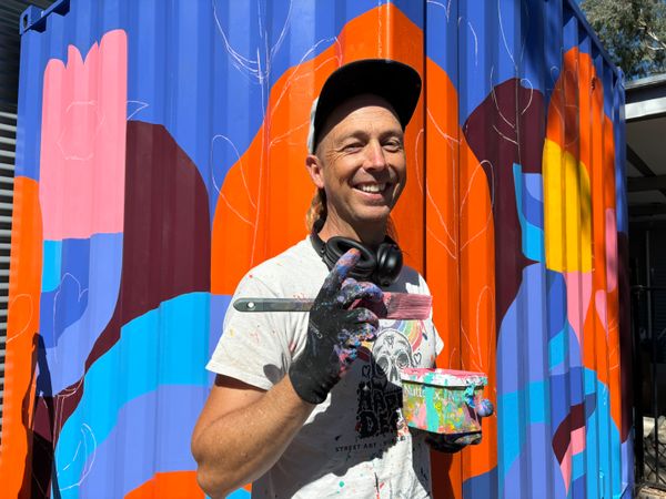 In week 8, visual arts students witnessed a remarkable display of creativity and collaboration. The Year 10 students embarked on an ambitious project to transform the shipping container situated outside the visual arts rooms into a colourful mural. The project was a collaboration between the students and renowned muralist, Bjarni Wark, better known as Happy Decay.