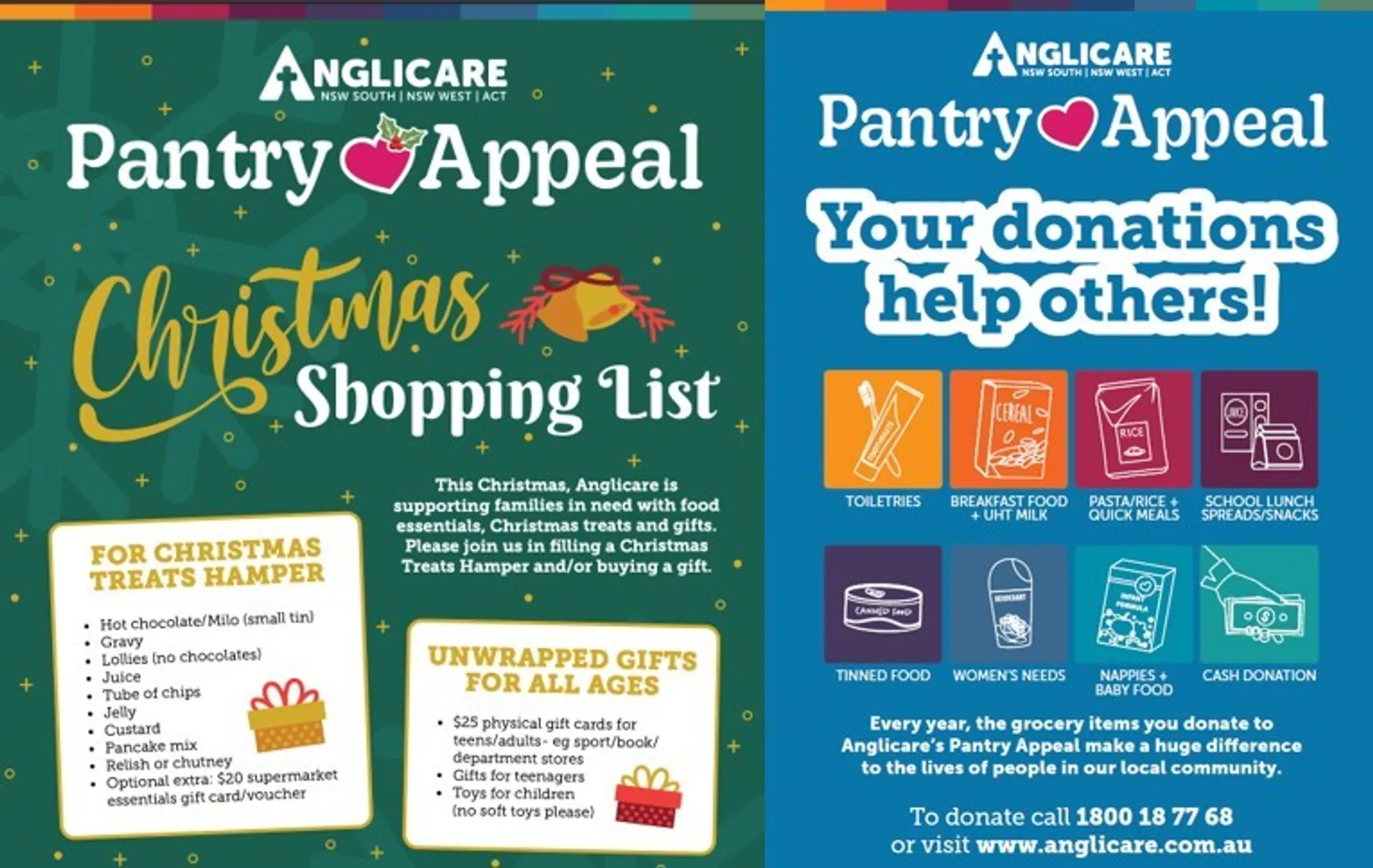 Secondary School staff and students are invited to participate in the 2025 Anglicare Christmas Pantry Appeal. All donations will go to St John's Care.