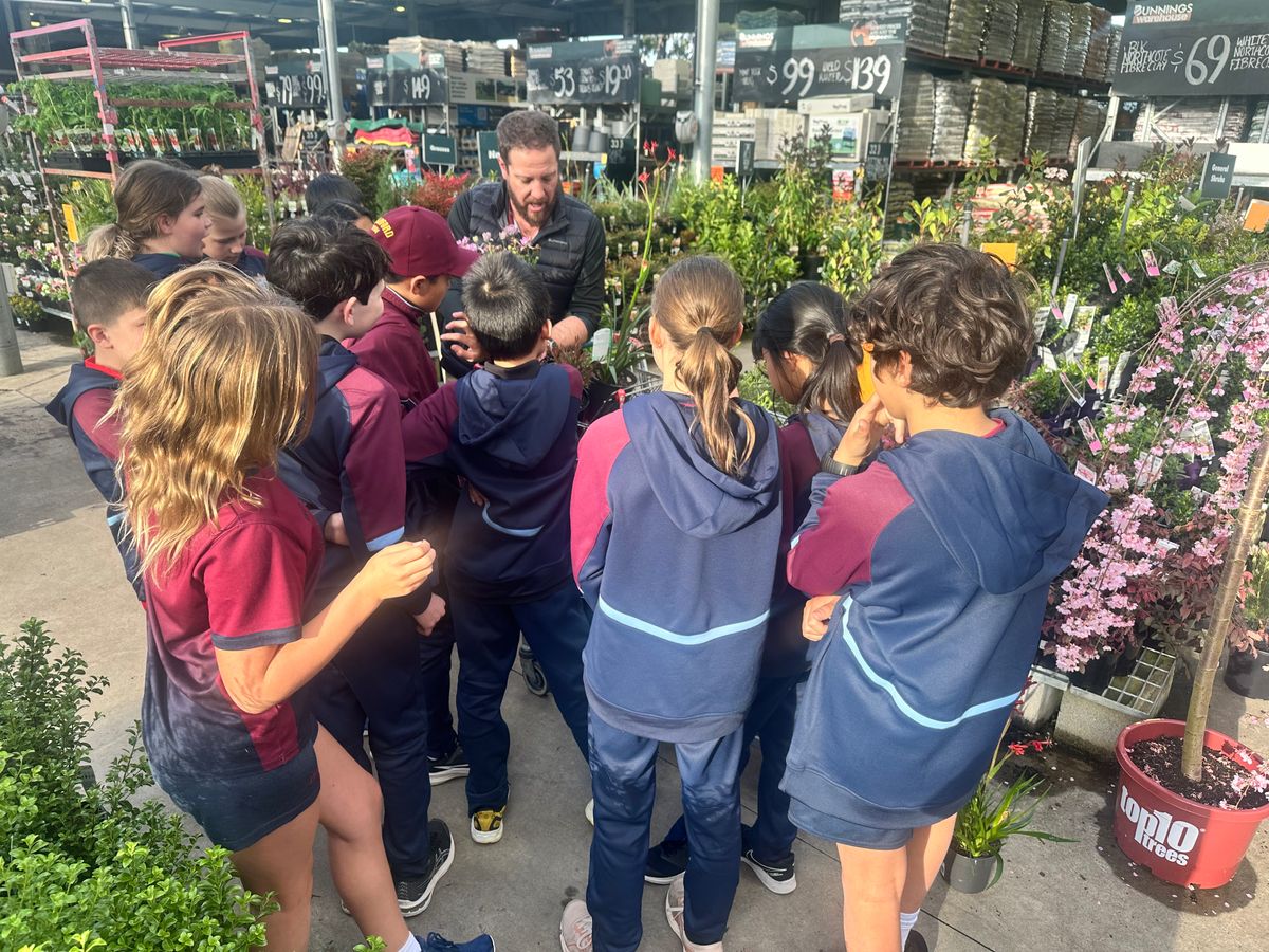 After finishing their work with Julie, students submitted a proposal to create a garden planted with natives that would encourage more bees. Students researched which local native plants would be best to incorporate in our grounds, and then they travelled to a local nursery to purchase them.