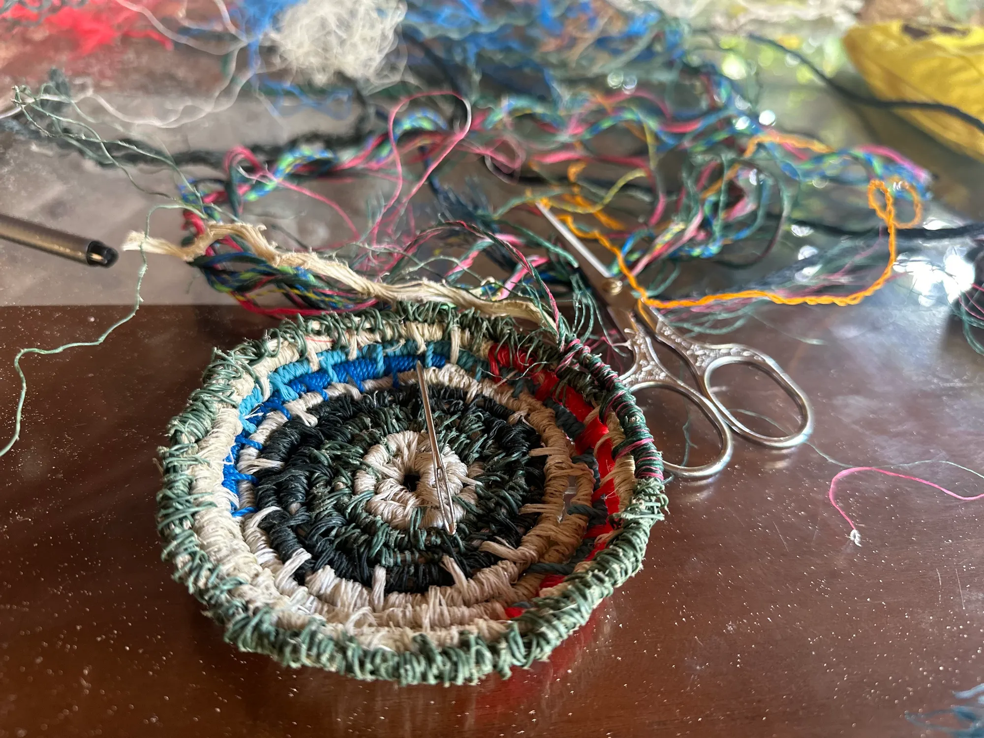 Old fishing line and rope is a common sight on the beach at Barry’s Place. Collecting it and repurposing it to make baskets is something that can be easily done. While visiting Barry’s Place, I met Lunicia and Ansi and showed them how to take what would usually be deemed as rubbish and make it into something beautiful.