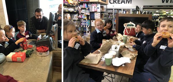 Dom and Kylie, owners of Barton Grocer, showed us all around, including the ‘staff only’ behind-the-scenes areas. Students brought $2 and purchased a cinnamon donut and a hot chocolate or freshly squeezed orange juice from the café. Students also had the opportunity to help shop for items needed in upcoming cooking in class.