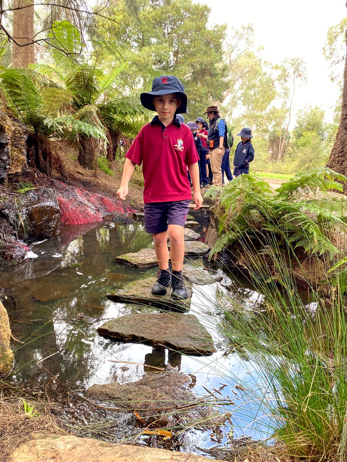 We went to the Botanic Gardens and we looked at the climate zones like desert, rainforests and grasslands The first one I looked at was the grasslands known as the Banksia plants. We thought there would be lots of grass, but it was all rocks. Next, we went to the desert. In the desert there was a big statue of a Thorny devil. The tour guide told us about how it can disguise itself to not get eaten. The rainforest we did not have time for but there was lots of moss trees and lots of shade and I know there is mist. After we did that, we went to eat food and we played tips until we left there. Also there was this very cool small river, and then we left on the bus. – Riley, 3KW