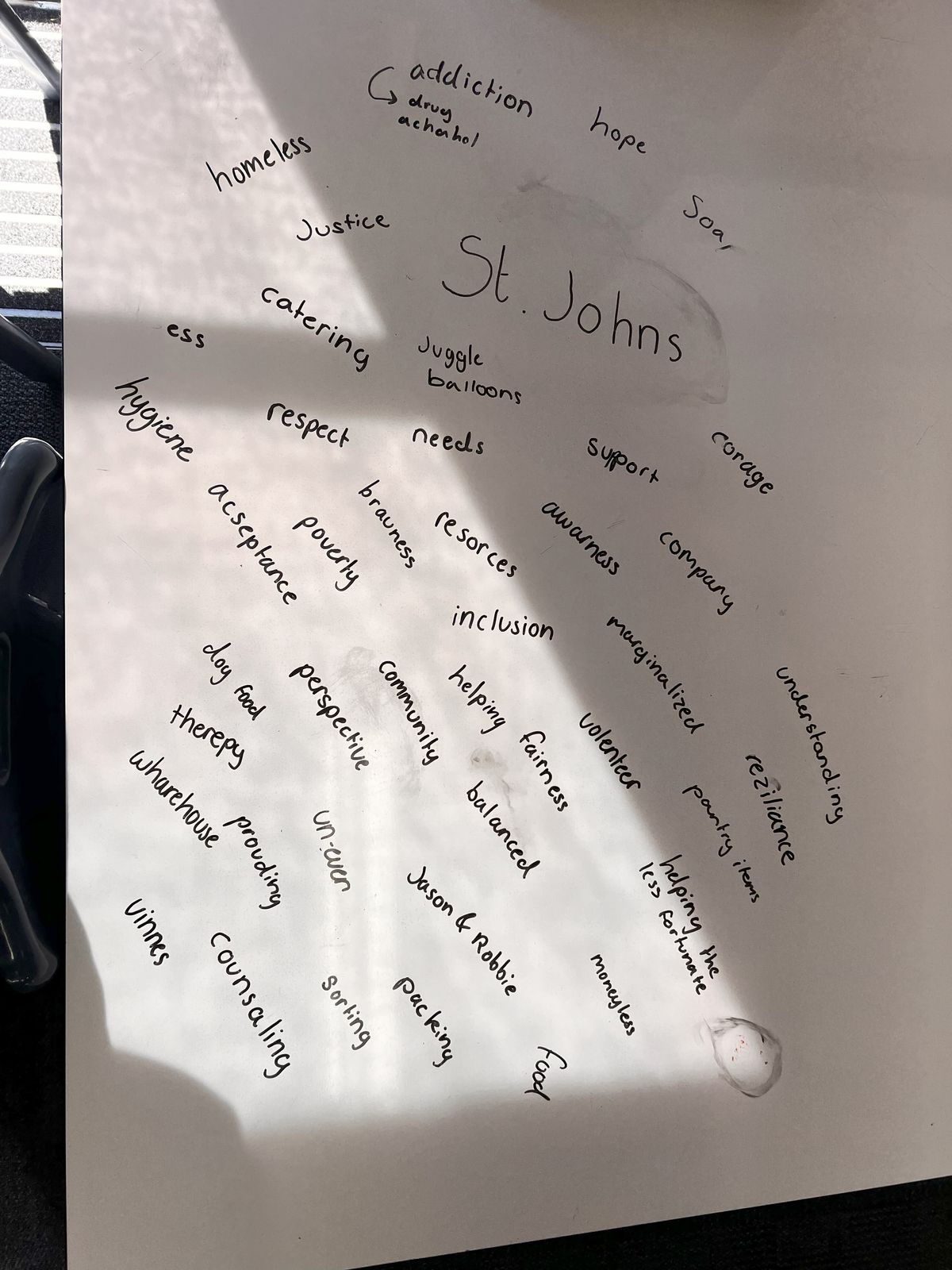 After the two incursions the equity group went off campus to St John's Care, to learn what life is like doing proper organisational work for the community. St John's Care provides homeless or disadvantaged people with resources including food and toiletries. We spent the morning doing our part by helping families in need.