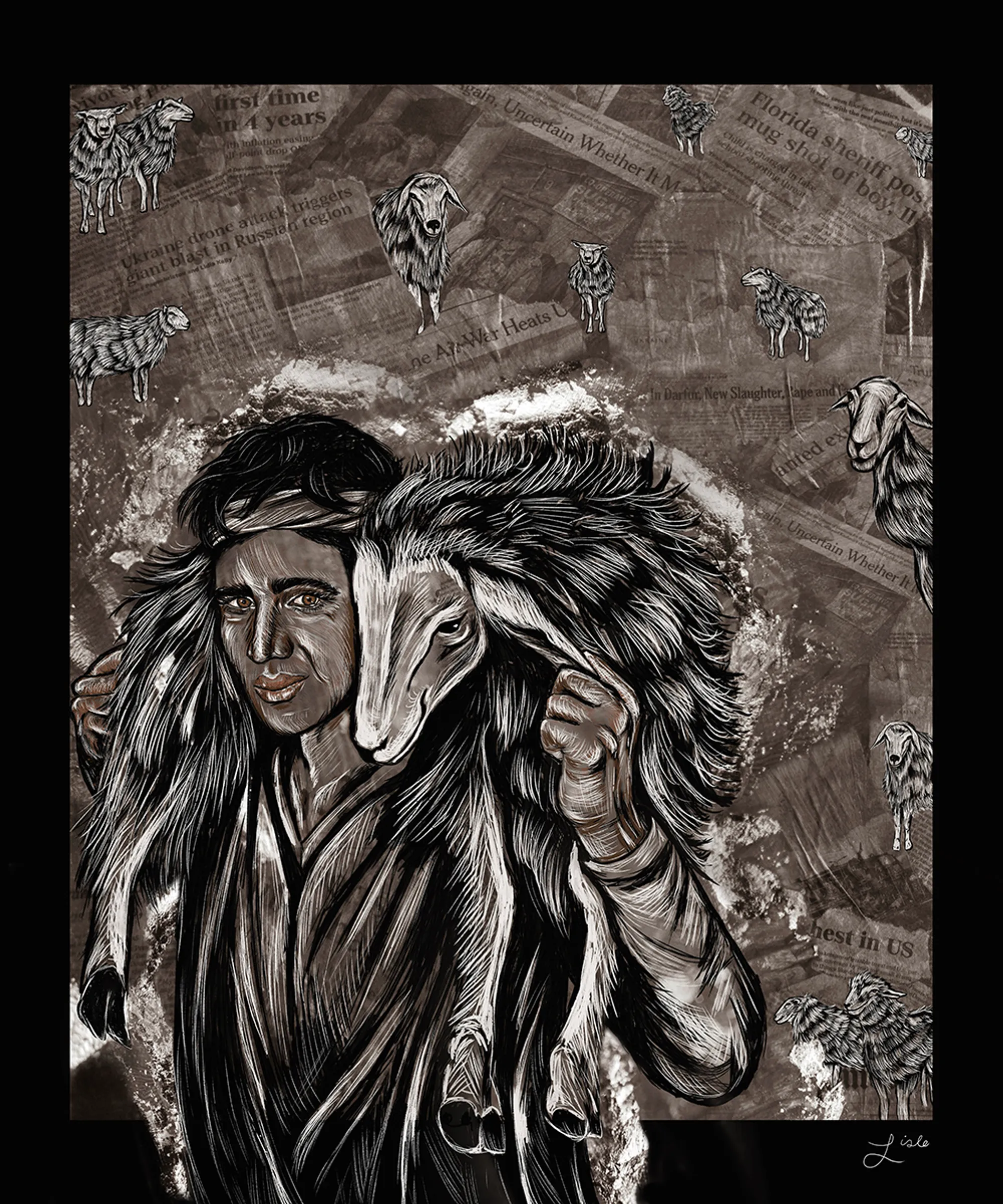 Artists have a unique ability to invite us to “see again.” Lisle Gwynn Garrity has created an artwork titled Lost & Found based on Jesus’ parable of The Lost Sheep where the Shepherd leaves the 99 sheep to search for the one lost sheep (Luke 15:1-7). She writes: