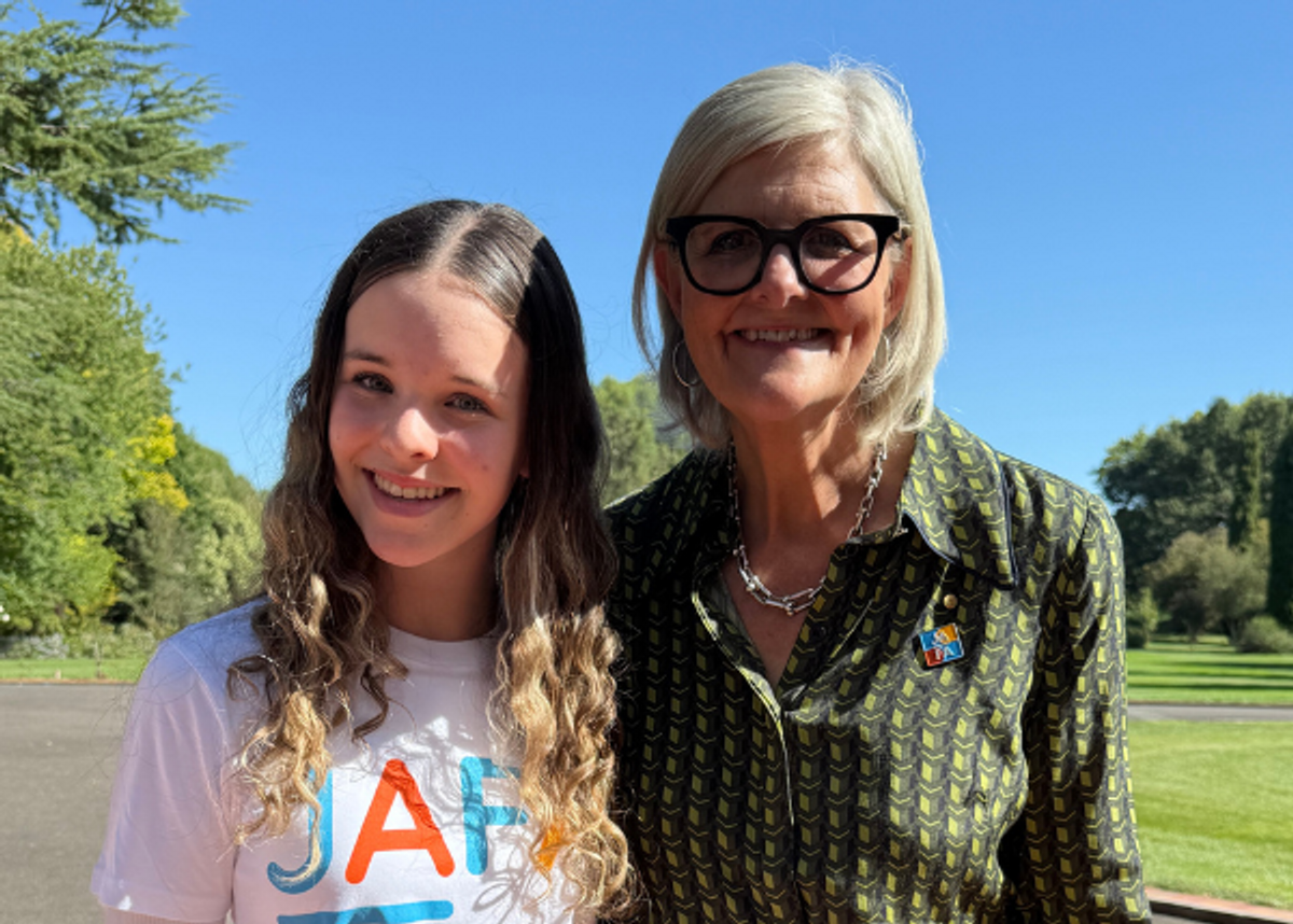 The afternoon tea at Government House not only provided an opportunity to discuss juvenile arthritis but also to celebrate Her Excellency the Honourable Ms Sam Mostyn AC's recent appointment as Patron of the Juvenile Arthritis Foundation Australia (JAFA)—an organisation Evie works closely with.
