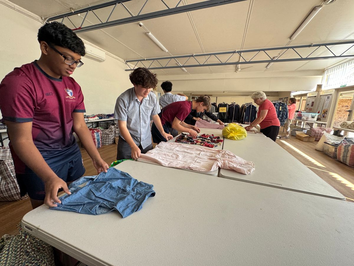 What started as an empty hall quickly transformed into a vibrant display of casual and formal clothing, shoes, and manchester items— all thanks to the teamwork and enthusiasm of our students. Working alongside the dedicated church volunteers, they helped sort, organise, and prepare the merchandise for the big event.