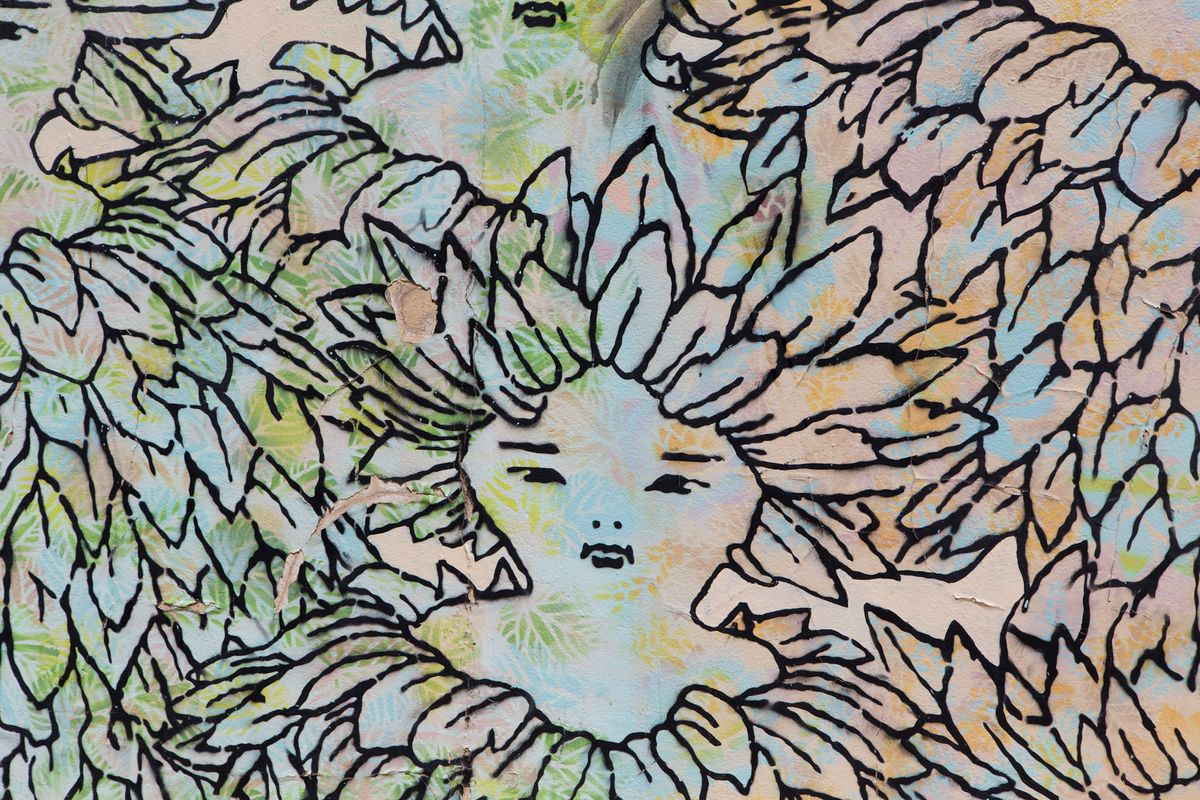 These photos would become the backdrop for my pieces, as I wanted my digital drawings to emerge within the noise of the world’s deepest pains, divisions, and everything in between. The collage is also a reference to theologian Karl Barth’s famous quote about reading the Bible and the newspaper together. I wanted the gold leaf to represent God’s presence in the spaces in between the events and forces that tear us apart.