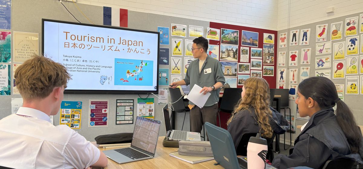 As part of their BSSS Society and Community unit on Travel and Tourism, Year 11 Japanese students heard from a guest speaker from the Australian National University (ANU), Mr Takuya Kojima. Mr Kojima, a respected academic with a deep understanding of contemporary Japanese society and culture, delivered an engaging and thought-provoking presentation that offered students insights into current trends and challenges in Japanese tourism.