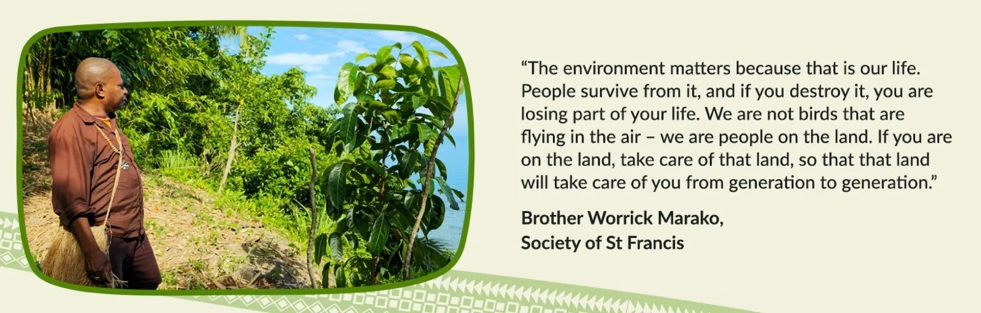 Anglicans In Development works with partners overseas and in Australia to fulfil the Fifth Mark of Anglican Mission: protect, care for and renew life on our planet. For the people of the Solomon Islands, rising sea levels are causing a loss of homes and coastal erosion, ruining food gardens with saltwater and displacing people. Men and women in religious orders, such as Brother Worrick Marako from the Society of St Francis, have been travelling throughout the Solomon Islands warning of the harmful community impacts of industrial logging and mining.