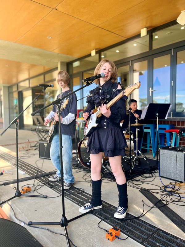 Year 11 band, The Greeks Freaks, then took to the stage with Gravity by Against the Current and Mess it Up by the Rolling Stones. R3DV3IL from Year 8 performed Animal I Have by Three Days Grace and Karma Police by Radiohead. Another Year 8 group, Ouch!, played three songs, including an original piece written by their frontman, Cody.