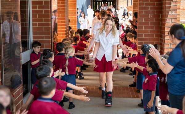 It’s a longstanding tradition at the College for the entire school to come out to bid the Year 12s farewell on their last day. Nearly 2000 students – from the youngest in Pre-Kindergarten to the oldest in Year 11 – formed a guard of honour through which the students passed – giving tiny and big high fives along the way.